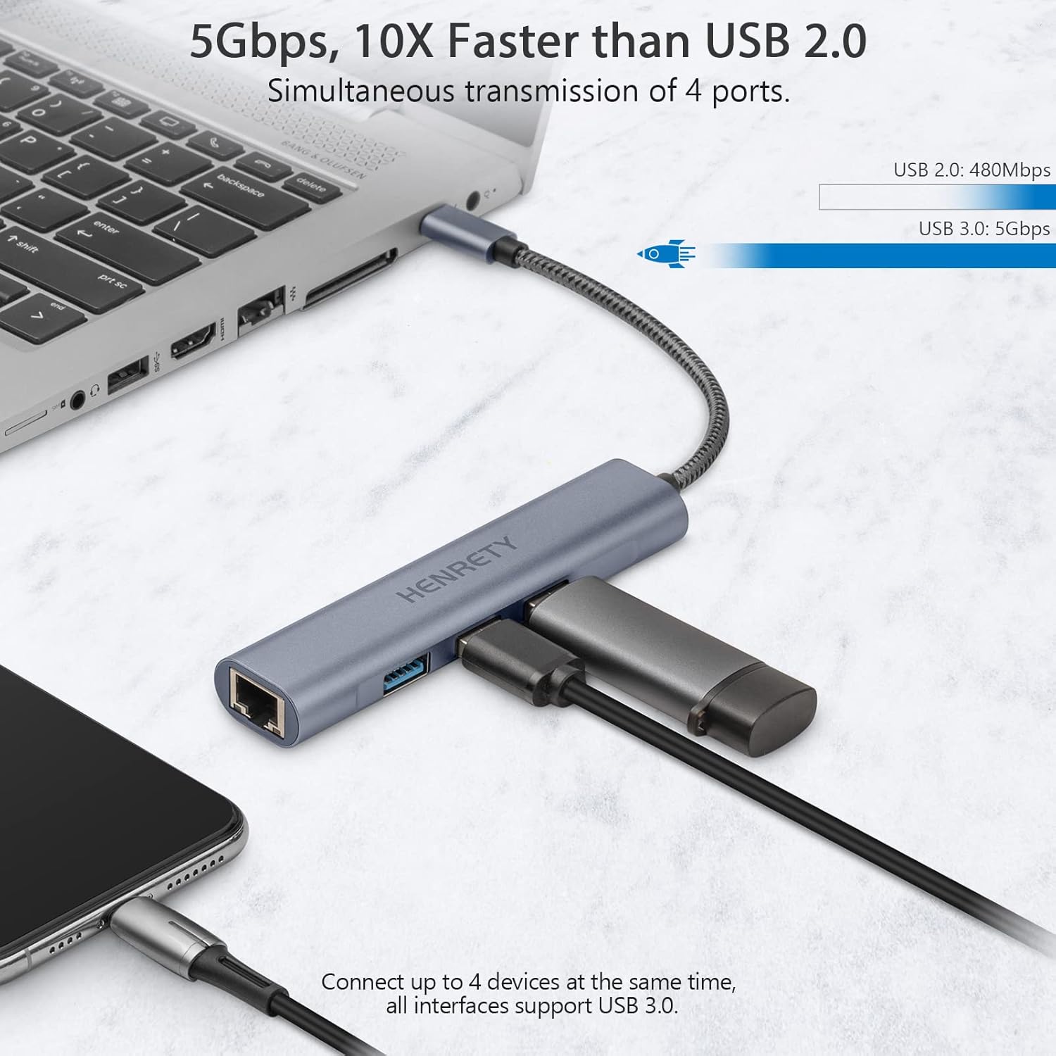 Henrety usb adapter supports super faster data transfer up to 5Gbps, 10X faster than USB 2.0.