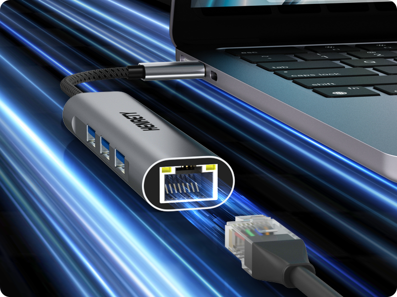 The USB Gigabit Ethernet port supports a super-fast network speed up to 1000Mbps (1 Gbps), downward compatible with 10 /100 Mbps, which is faster and more stable than your laptop ethernet port.
