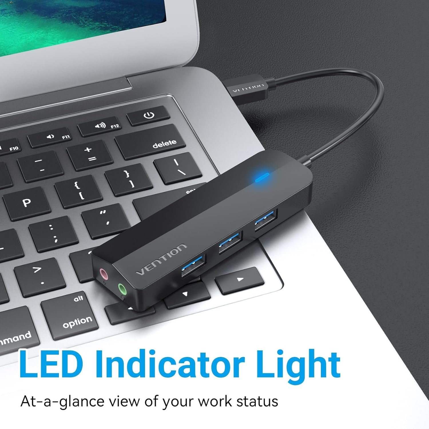 Versatile connectivity: VENTION USB 3.0 Hub 3-Port USB Sound Card is a 2-in-1 external stereo audio adapter that allows you to connect multiple USB devices and enjoy high-quality audio through the 3.5mm jack