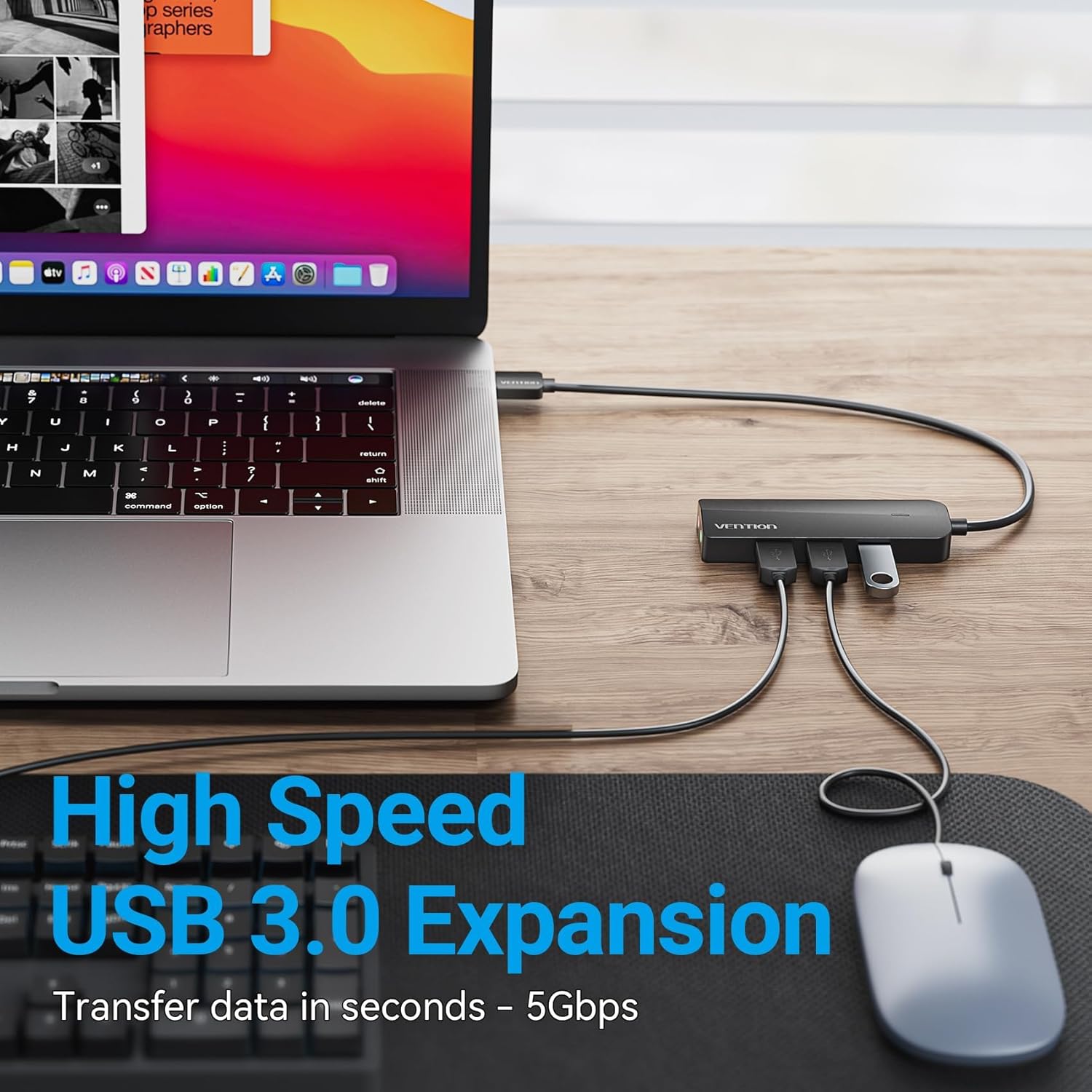 High-speed data transfer: Equipped with USB 3.0 technology, this hub provides up to 5Gbps data transfer speed, allowing you to transfer large files in seconds
