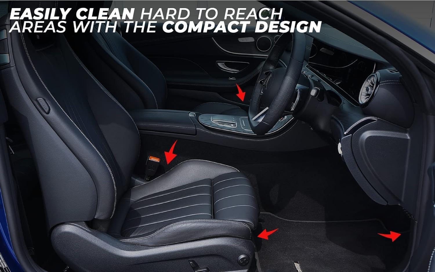Easily clean out both wet and dry messes. Easily reach the most hard-to-reach nooks and crannies in your vehicle with our compact design.