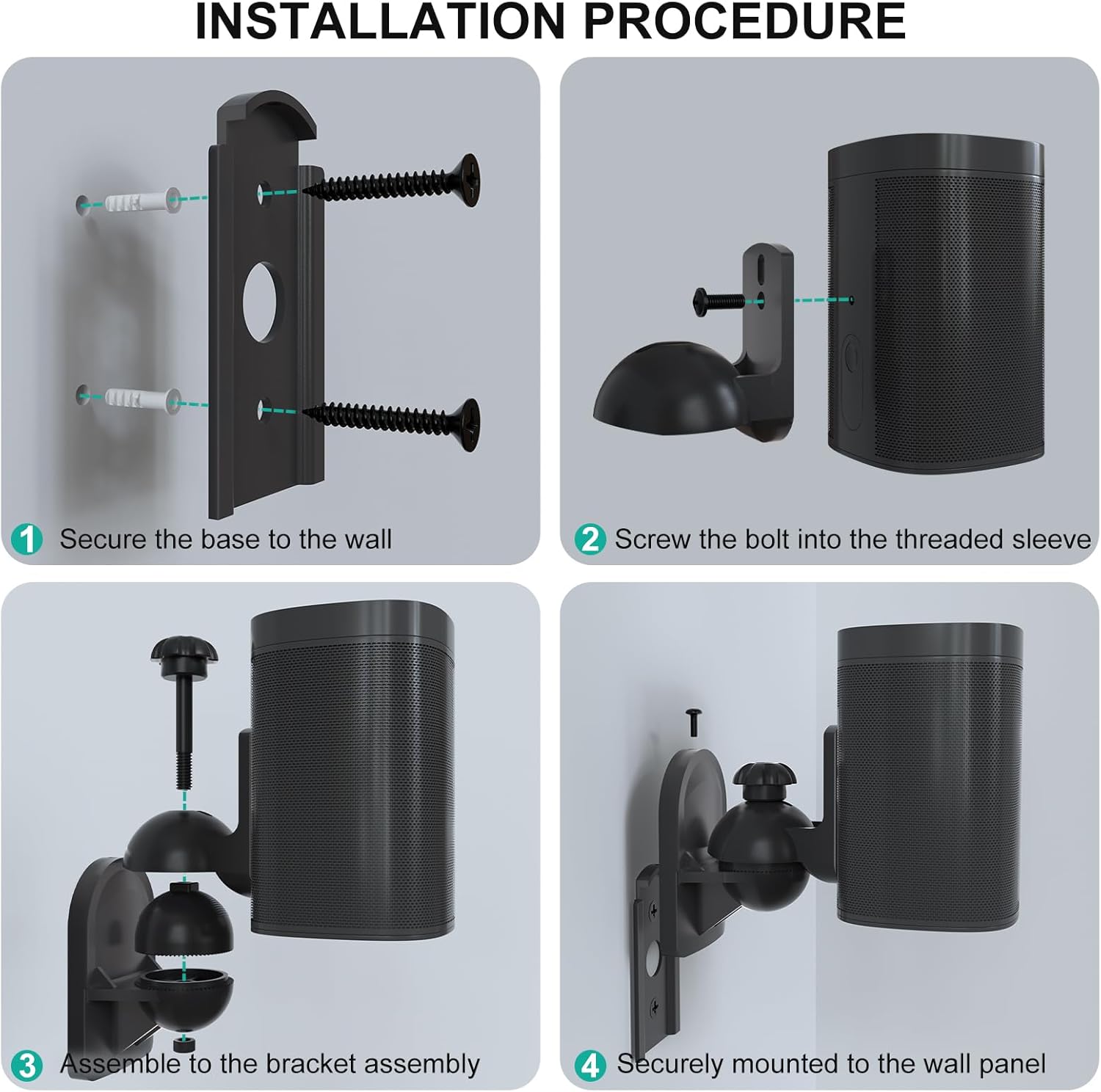 Compatibility: Sound bookshelf satellite speaker mount brackets built to be mounted on stud, concrete or brick/stone walls. Max. Capacity: 7.7 lbs (3.5kg).
