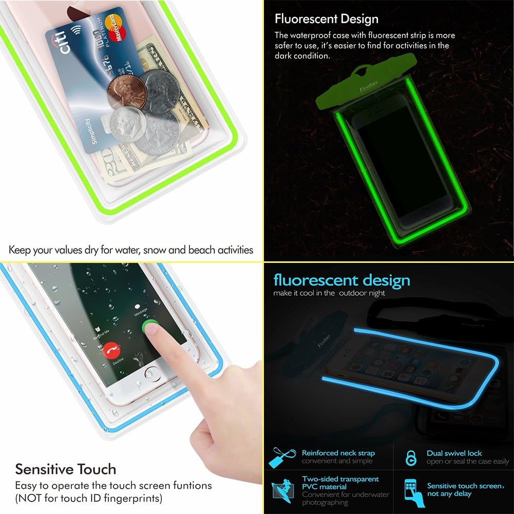 IKAIHAO 4 Pack Waterproof Phone Case (Blue+Green+Red+Black )Perfect for underwater protective for outdoor with luminous ornam, ONE SET FOR YOUR FAMILY-There are 4 different color waterproof cases in the package, Choose your favorite color,Test Waterproof Function Before Each Use.