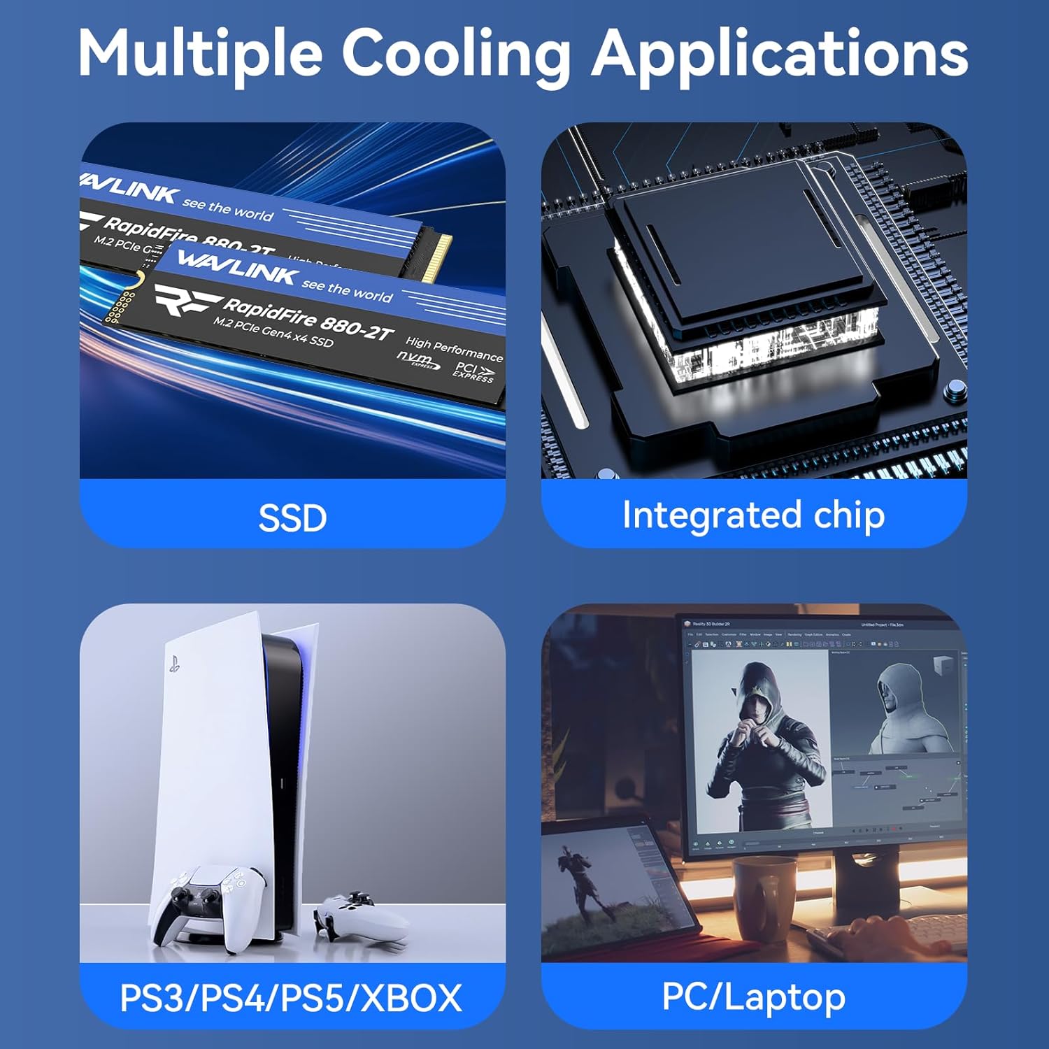 Universally Fit: This M.2 heatsink is compatible with M.2 2280 SSDs. It is universally designed to fit for PC/Laptop/PS3/PS4/PS5/XBOX, and is perfectly suited for Samsung 850 EVO, 860 EVO, 960 EVO, 970 EVO, 970 EVO Plus, 980, 950 PRO, 960 PRO, 970 PRO, 980 PRO, 990 PRO, and more
