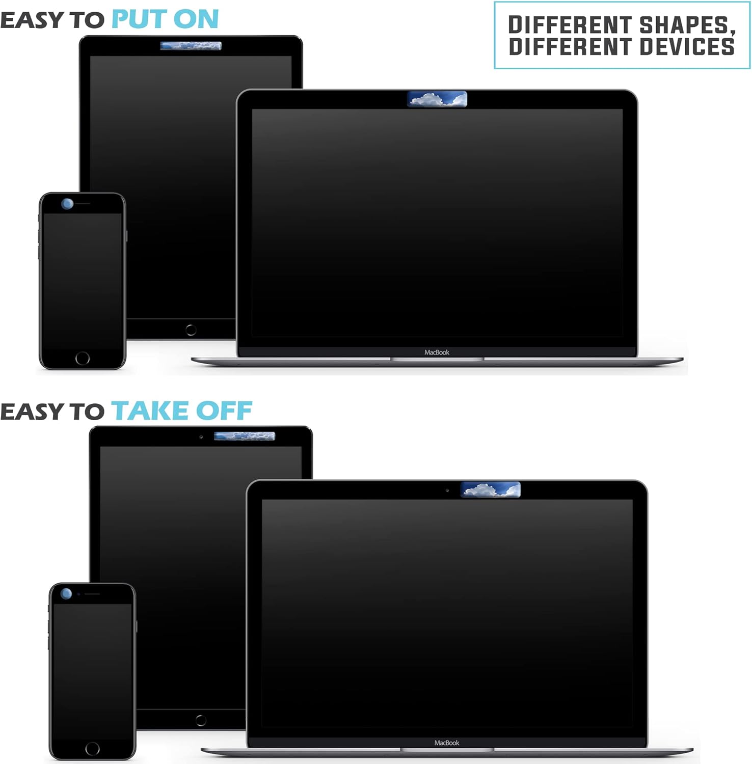 FITS MOST DEVICES: Use it to cover Webcams on laptops, tablets, cell phones, game consoles and more! Your package includes 7 different sizes and shapes to meet your unique needs for your devices. – SUPER THIN & DISCREET – At 0.8mm, it’s thinner than a credit card. You won’t even notice it’s there!