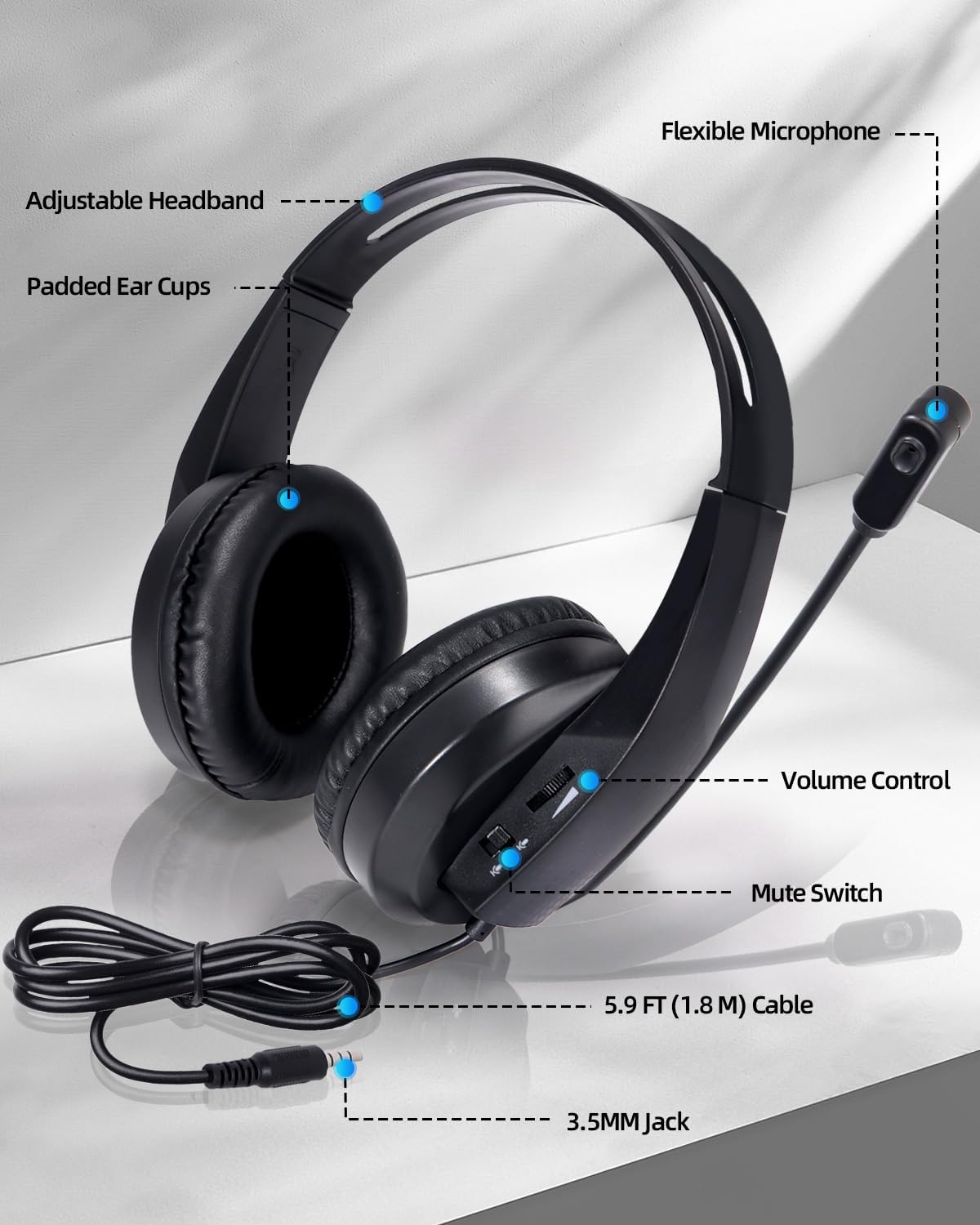 【NOISE CANCELLING MIC】- Minimizes unwanted background noise for clearer calls, and the microphone can be adjusted to the optimal position at will. The 5.9 ft (1.8 m) cable is just the right length, perfect for office, home, online classes, meetings, etc.