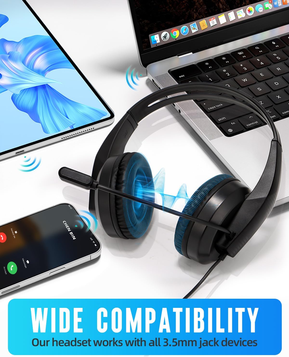 Wired Headset with Mic for Laptop – Computer Headset for Kids Teens Adults with Noise Canceling Microphone & Volume Control – 3.5mm Stereo Headphones with Mute for Home Office Class