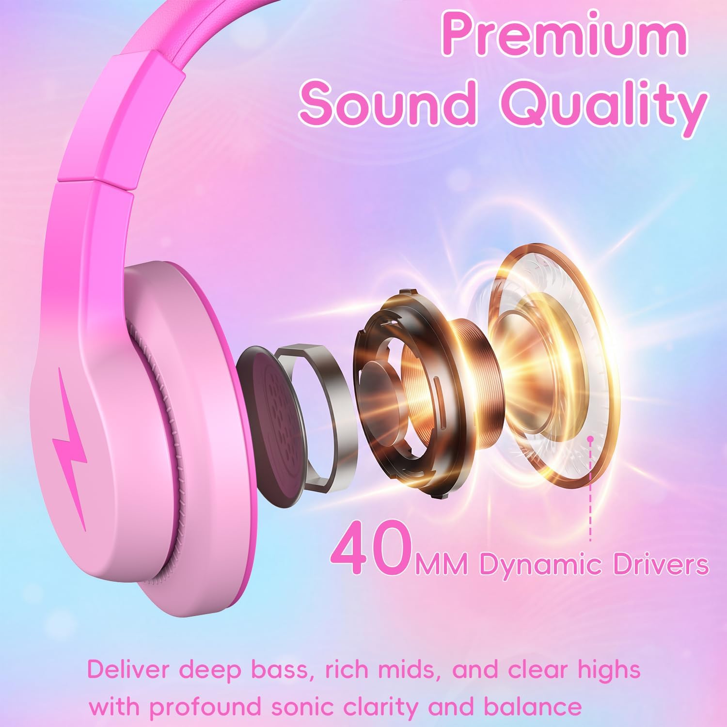 【85dB Safe Volume Limiter for Hearing Protection】Candy Bila kids headphones feature a built-in 85dB volume limiter and 40mm premium drivers, ensuring rich, clear stereo sound at a consistently safe volume. This protects children’s delicate hearing during study, entertainment, and travel.
