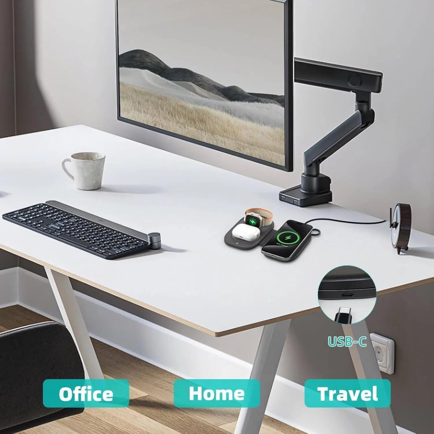 【Portable and Foldable】Due to the compact and foldable design of the charger pad, it is more suitable for travel, home, office, and other scenarios, which is really a great space saver. Also, when not using you can fold it up, and takes up even less space, very easy to carry with suitcases, backpacks, handbags, etc., so it’s on the travel must-haves list. (when folding the size is 5.25in*3.57in*0.76in, 0.35lb)