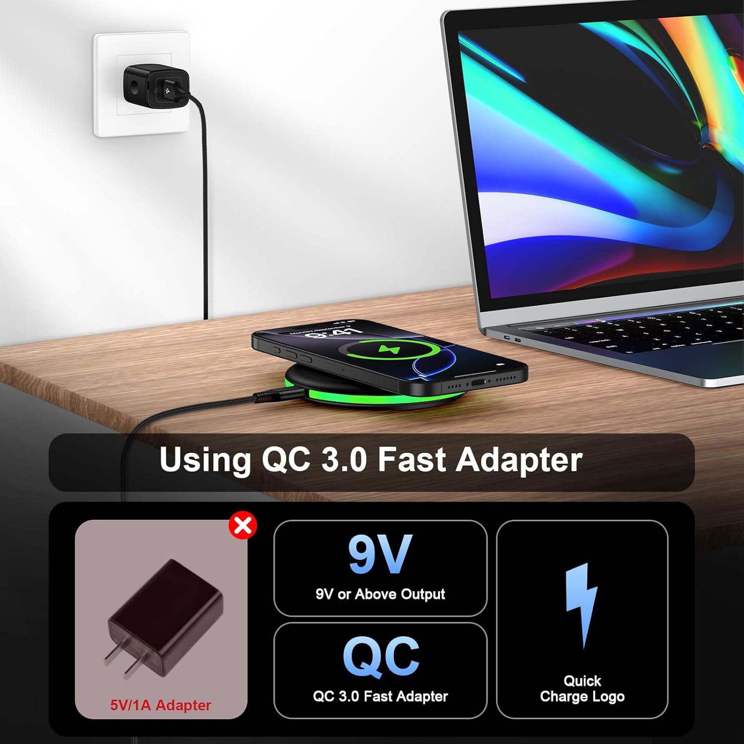 15W Wireless Charger Android with QC 3.0 Adapter:The Samsung Wireless Charger Fast charging or wireless fast charger samsung comes with a QC 3.0 18W adapter for a stable power supply. This equipped QC3.0 samsung fast charging block or power adapter provides better charging effect,also our samsung S25 Ultra adapter phone charger pad compatible with more usb devices at your hand. The 15W Samsung galaxy S25 Ultra wireless charger or Samsung galaxy S25 edge wireless charger offers fast charging for samsung galaxy S25 ultra S25 plus S25 edge S24 Ultra FE S23 plus S23 ultra S23 fe or Motorola Razr 60 Ultra/ Edge 60 Pro/Razr Ultra 2025/ Razr 60/Razr 2025 Power from 0% to 60% in just 30 minutes.