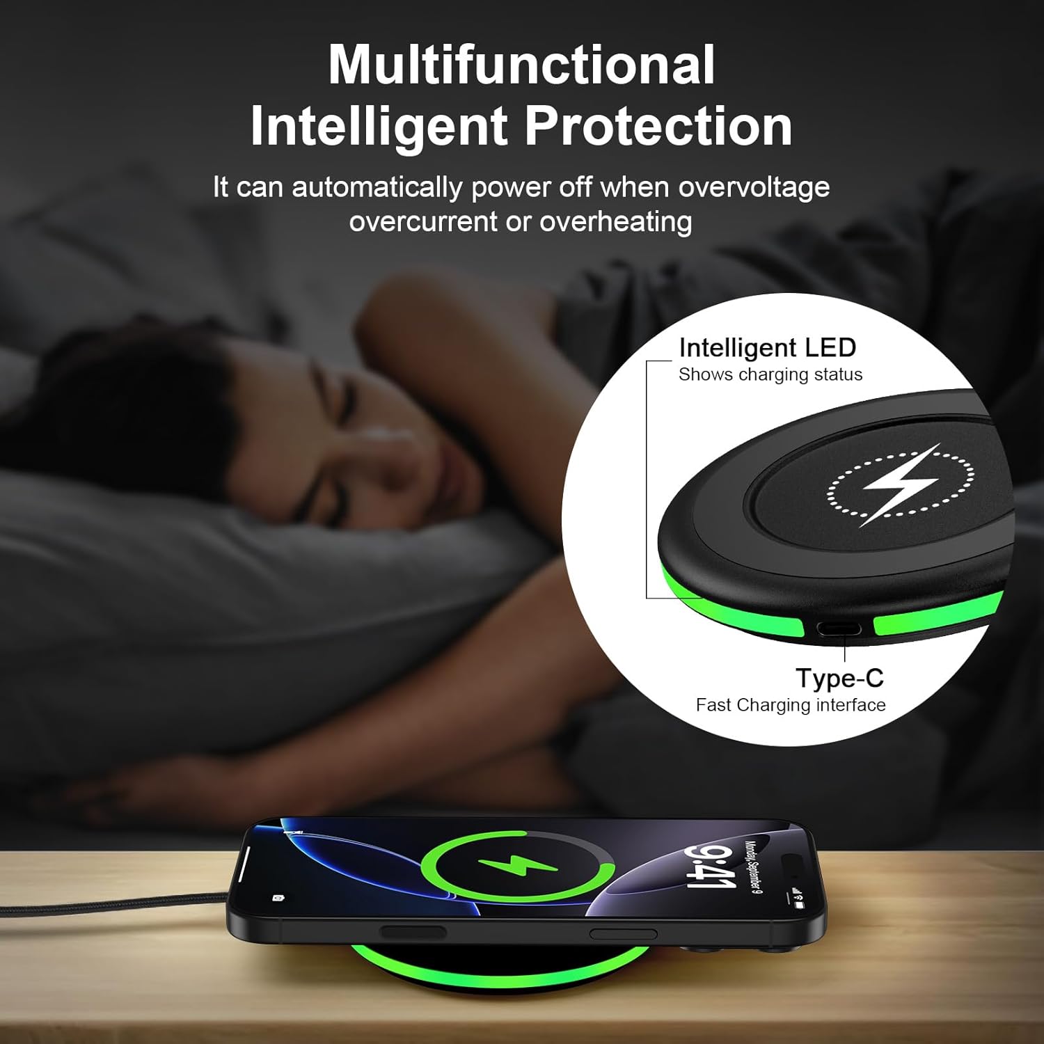 With this Google Pixel 9A /9 pRO/iphone 16e wireless charging pad, you can say goodbye to the difficult times of plugging the charging cable in the dark.