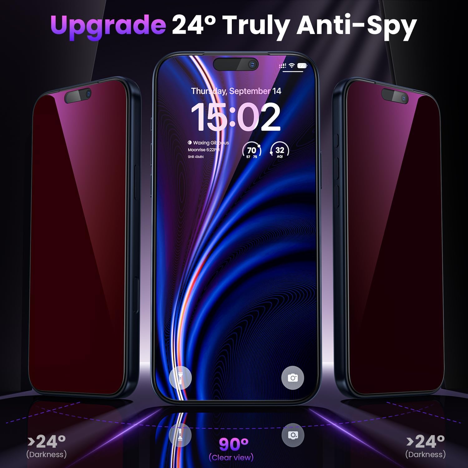 True 24° Privacy Test: WSKEN iphone 17 pro privacy screen protector is only visible to people within 24°. High precise privacy design! It blocks any prying in public places, protect your privacy and information.