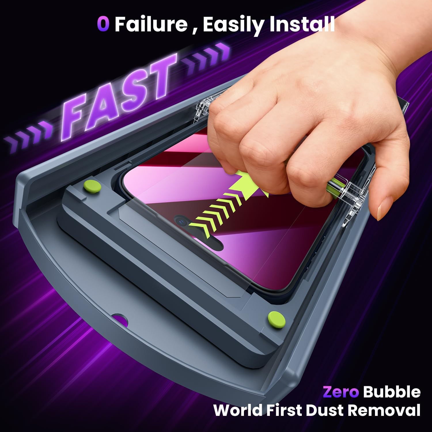 10S Fast Auto Dust Removal: Easy and bubble-free installation design, magical alignment kit for install this privacy screen iphone 17 pro within 10s, zero skill get success in one take. Please watch the installation video before starting.