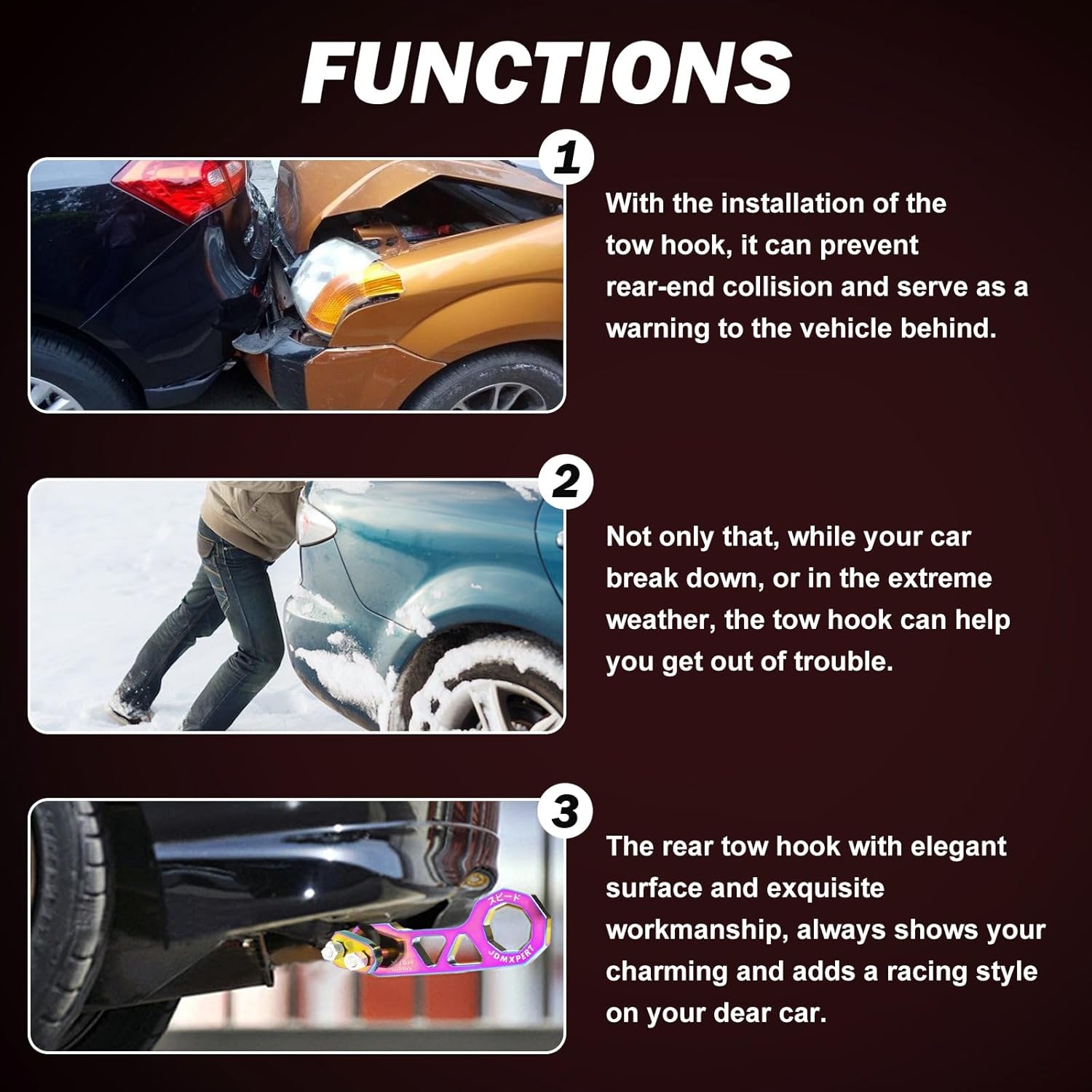 [Universal Fit]You can use it on your car,truck,coupe,pickup or other types of vehicle.Please make sure your car has a hook in the rear of the car before you place an order.