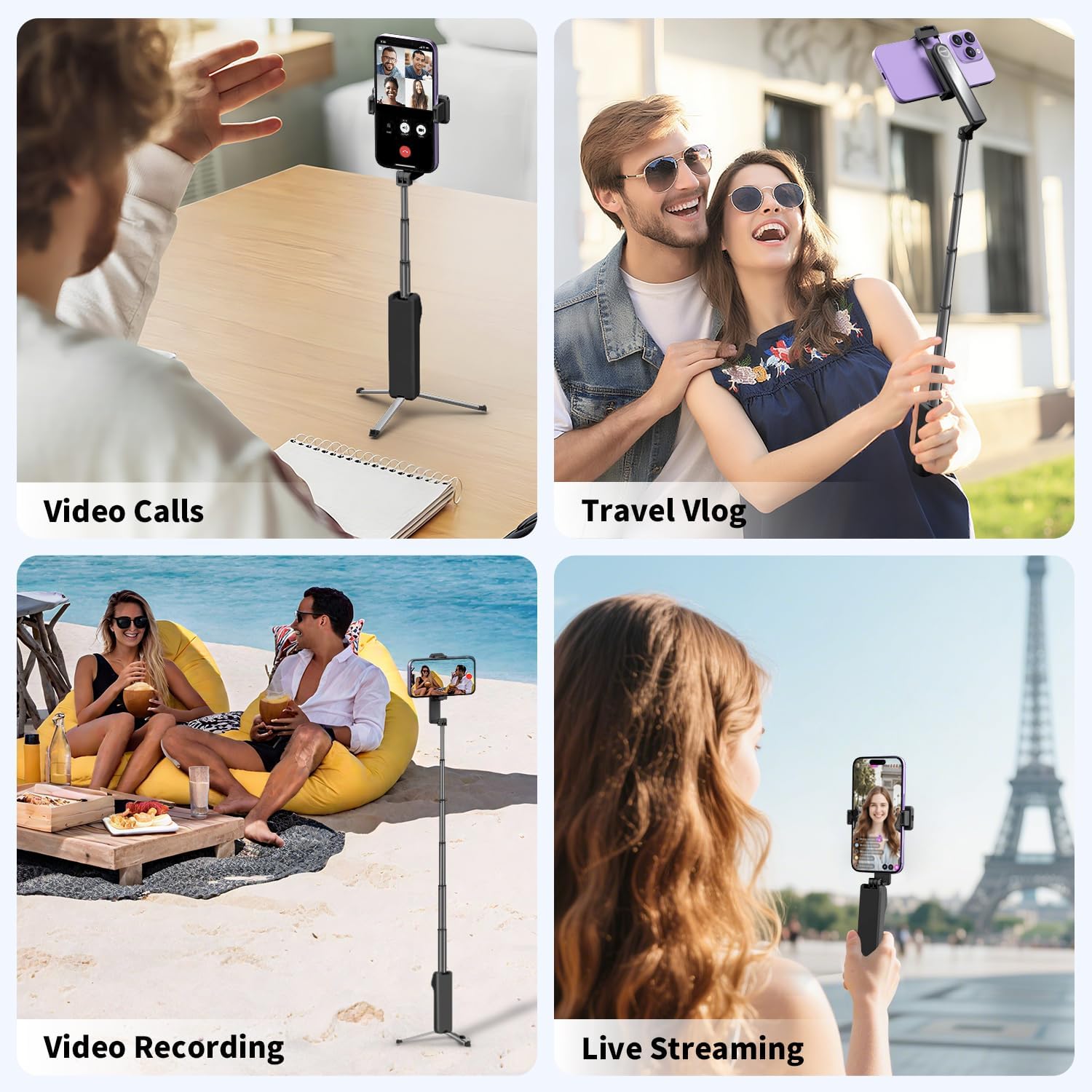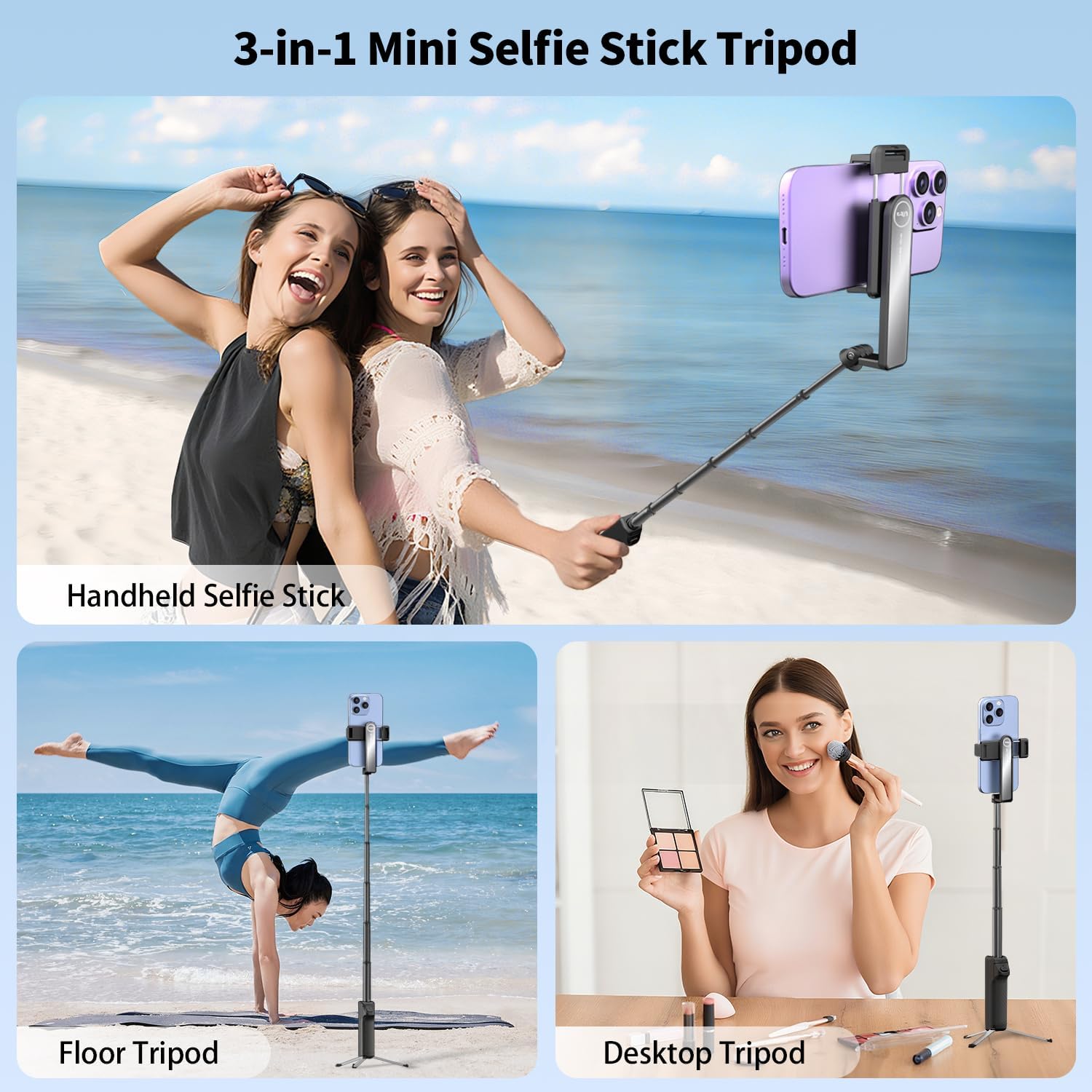 【New Mini Selfie Stick for iPhone】 This new iphone selfie stick is made of high-quality aluminum alloy material and has a built-in selfie tripod. The mini tripod for iphone adopts an integrated retractable design and can be extended to 26.77 inches, allowing you to achieve ultra-wide-angle free shooting
