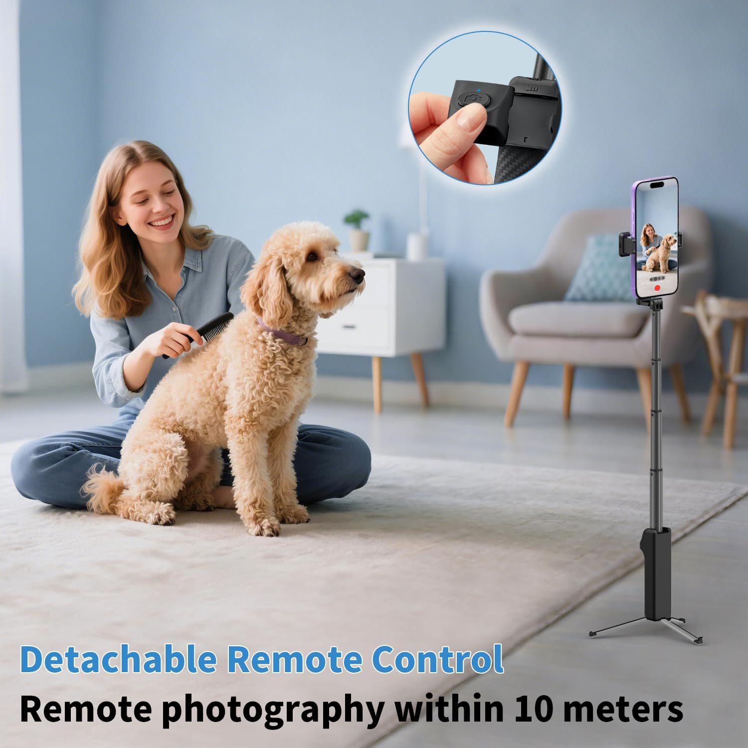 【Pocket Tripod Size】 Our small selfie stick for iphone weighs only 0.31 pounds and is 4.72 inches long when folded. This selfie stick for android is lightweight and portable, just put it in your pocket. The mini phone tripod is equipped with a detachable remote control, you can also take photos remotely