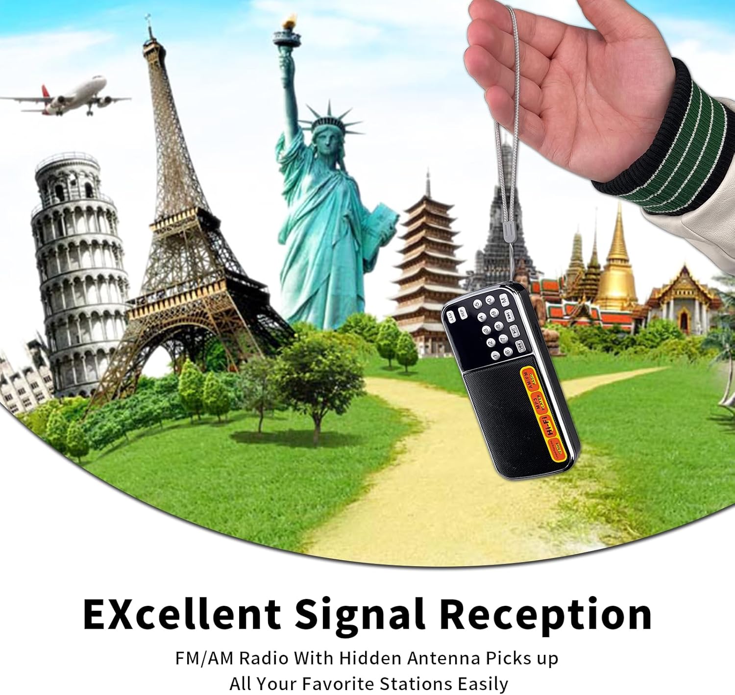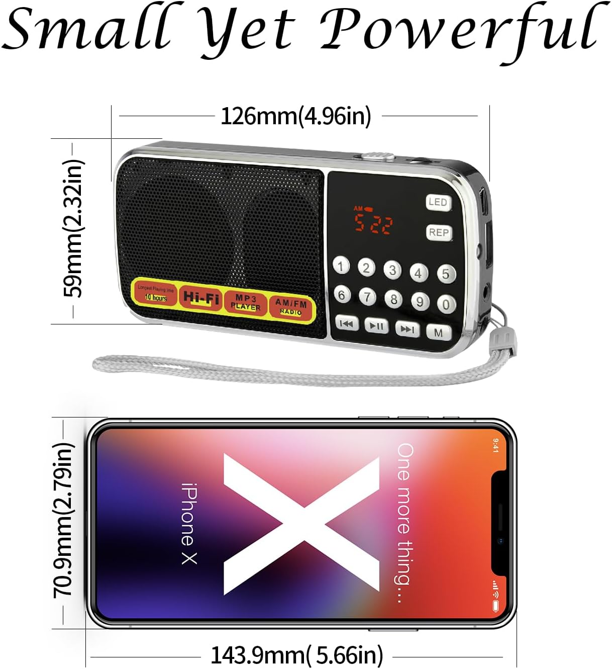 【Portable and On-the-Go Companion】Hold the mini radio effortlessly with just one hand, making it exceptionally convenient for on-the-go use. Its compact dimensions of 126*59*25mm and a weight of merely 126g make it as portable as an iPhone 7, fitting seamlessly into emergency kits. ts sleek silver strap, doubling as a concealed antenna, not only adds a touch of style but also offers versatile hanging options, making it effortlessly fashionable and portable whether you’re on the go or relaxing indoors. Elevate your morning exercise, strolls, or park breaks with the delightful accompaniment of vibrant music or engaging radio shows.