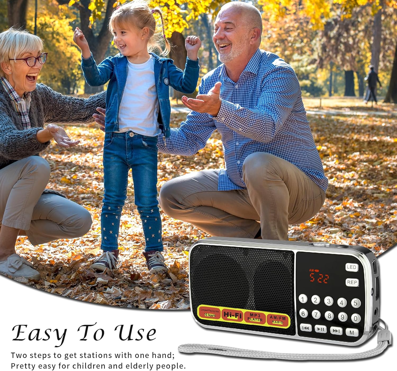【MP3 Player and Emergency Flashlight】Our portable radios can‘t only listen to your favorite radio stations but also act as MP3 players. Seamlessly play MP3 files on TF cards and USB flash drives, ensuring you can enjoy your favorite songs anytime, anywhere. Short press the “REP” button to allow you to switch between single loop and all song playback modes. In addition, the versatile LED charging indicator serves as a handy flashlight, perfect for camping or nighttime activities, ensuring you have a reliable light source in the event of a power outage.