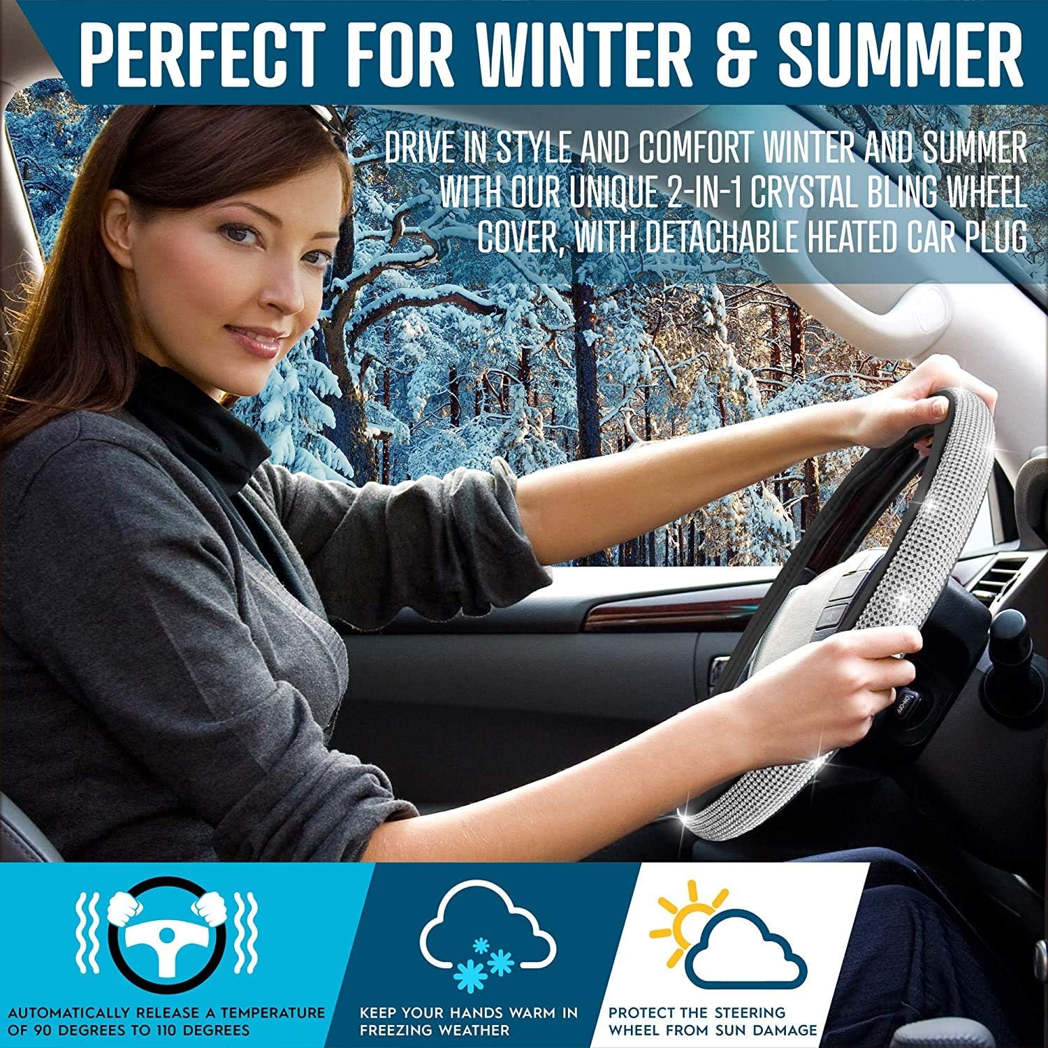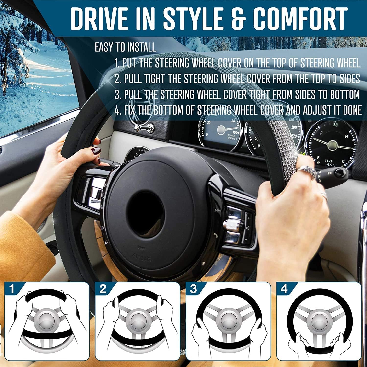 Winter Essential: Keep your hands warm and cozy during the cold winter months with our steering wheel cover. The plush wool interior provides insulation and the faux suede exterior looks stylish